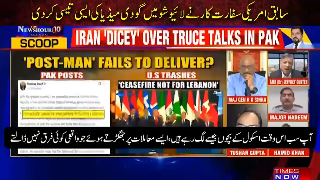 امریکا ایران امن مذاکرات میں پاکستان کے کردار پر بھارتی میڈیا کا واویلا، سابق امریکی سفارتکار جیفری گنٹر نے لائیو شو میں بھارتی اینکر کو سخت تنقید کا نشانہ بنا دیا۔